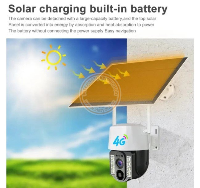 Solární napájení kamery je navrženo tak, aby efektivně akumulovalo energii během slunečných dnů a kamera tuto nahromaděnou energii využívala v oblačném počasí či ve večerních hodinách. Díky certifikaci IP65 je vhodná pro použití i za deštivého počasí.